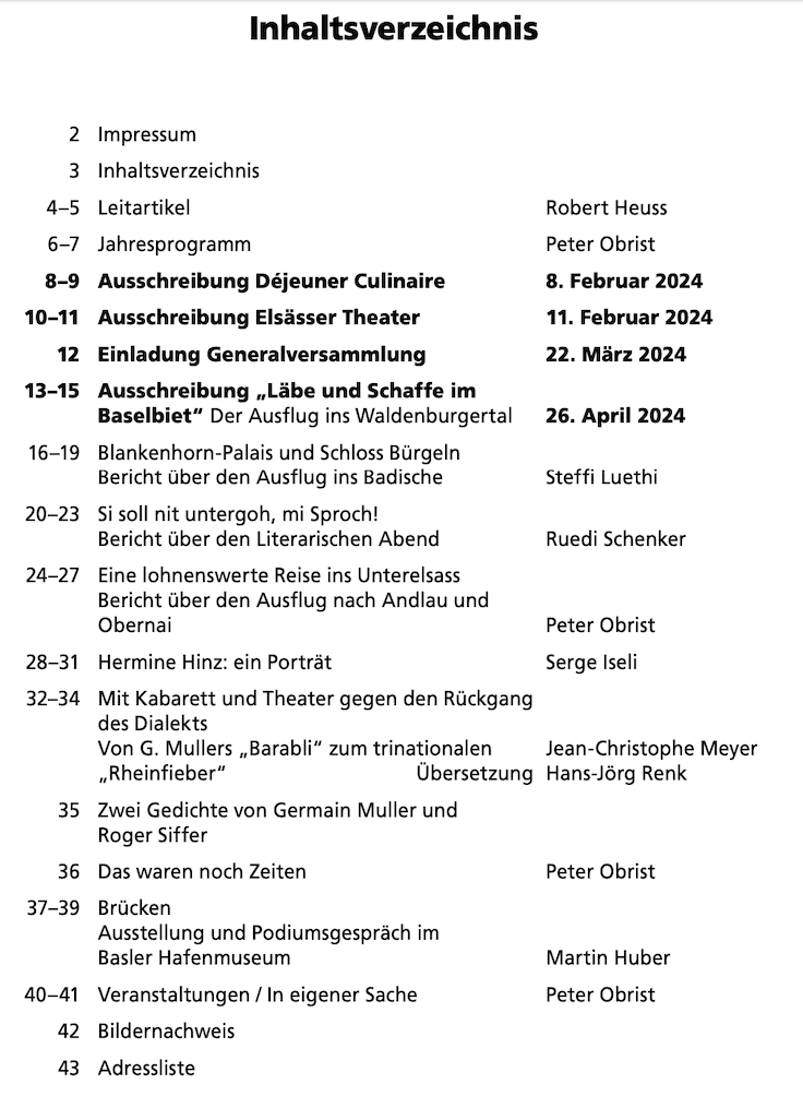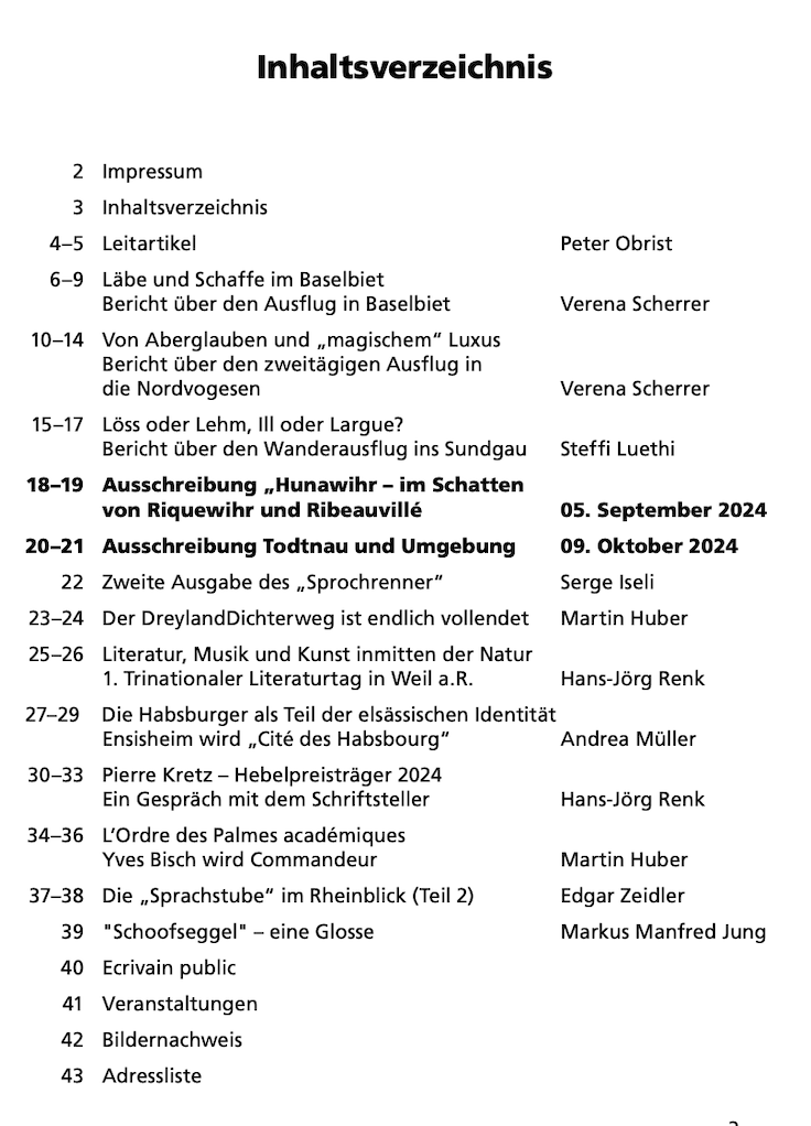 Jedes Mitglied des Kulturvereins Elsass-Freunde-Basel erhält die über 40-seitige Gazette viermal im Jahr zugestellt. Darin findet man eine Vielzahl von interessanten Artikeln über das Leben und die Geschichte des Dreylands.