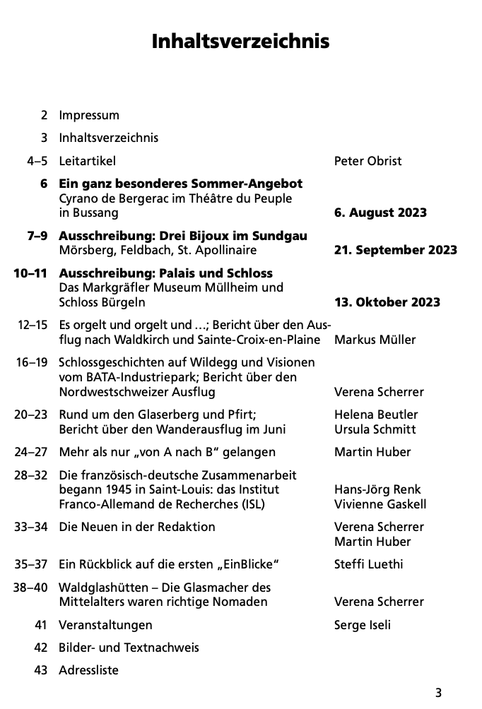 Jedes Mitglied des Kulturvereins Elsass-Freunde-Basel erhält die über 40-seitige Gazette viermal im Jahr zugestellt. Darin findet man eine Vielzahl von interessanten Artikeln über das Leben und die Geschichte des Dreylands.